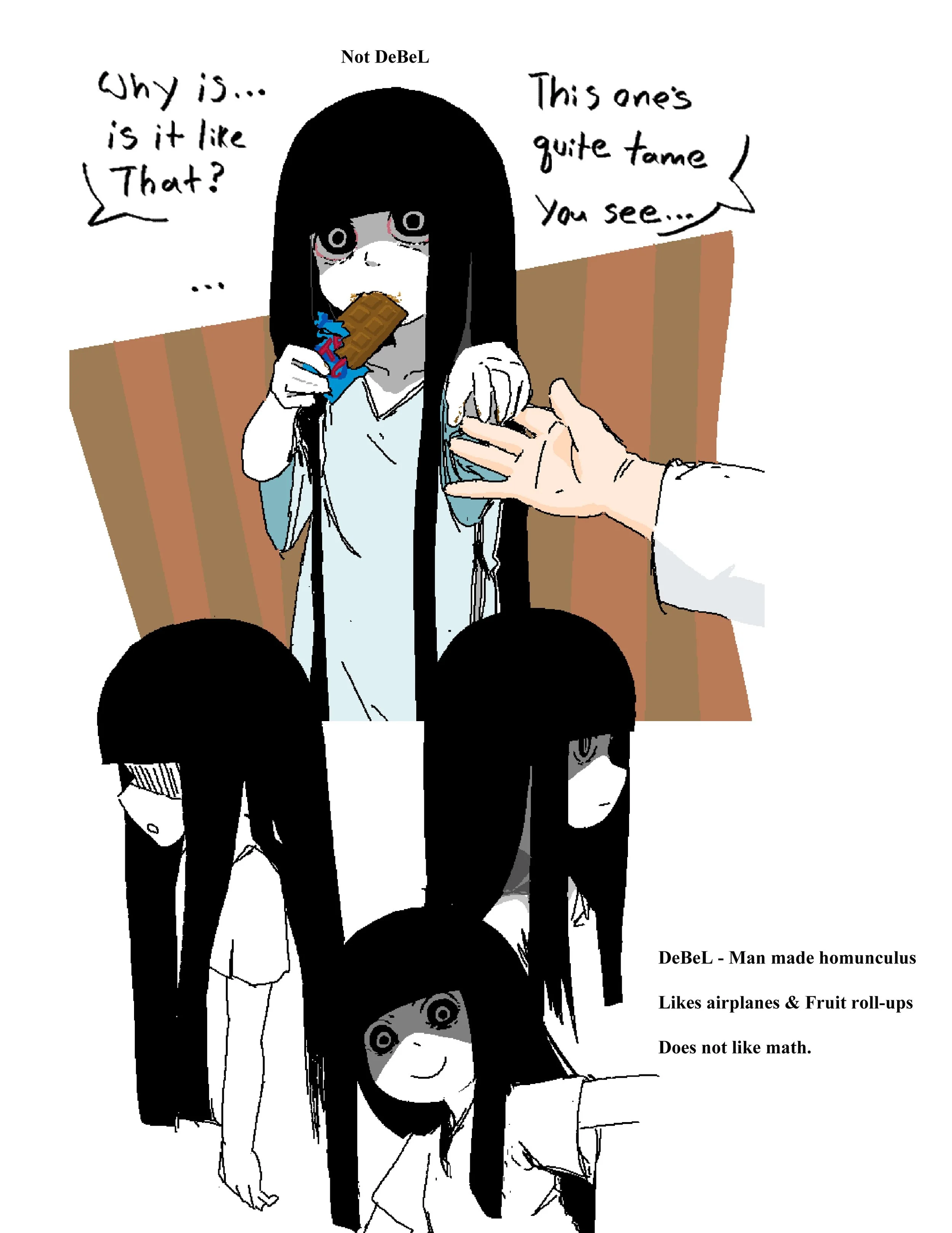 Now this here is DeBeL see the difference? Exactly! There is none, except for the fact that DeBeL is the first successful homunculus ever created! She doesn’t know it, but she is living proof of mankind’s contempt at the natural order of things.